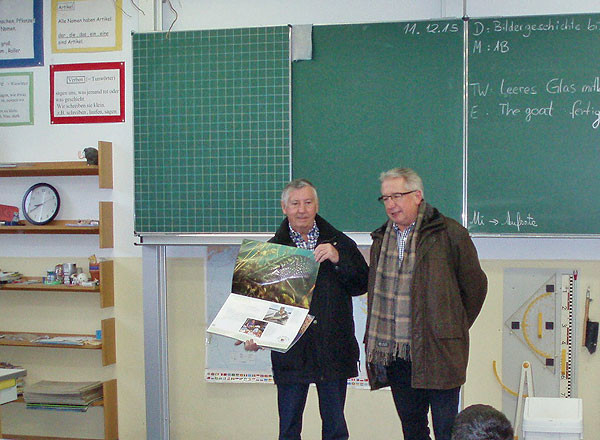 Am Freitag, 11.12.15 bekamen die Klassen 3 und 4 Besuch von zwei Repräsentanten des Anglervereins Würmtal, den Herren Kunow und Britsch. Die Besucher überbrachten den Klassen 3, 4a und 4b jeweils ein Exemplar des neuen Kalenders „Wilde Welten 2016“, der vom Landesfischereiverband Baden-Württemberg in Zusammenarbeit mit dem Landesjagdverband B.-W. herausgegeben wird.